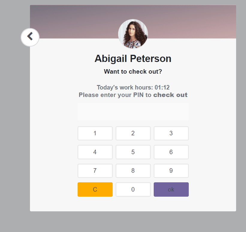 Al seleccionar la opción Escanear su insignia, puede usar su ID de empleado aquí para escanear.También puede usar el botón Identificar manualmente para registrar su asistencia.Esto lo redirigirá a una nueva ventana donde puede seleccionar el perfil de su empleado e ingresar el PIN.
